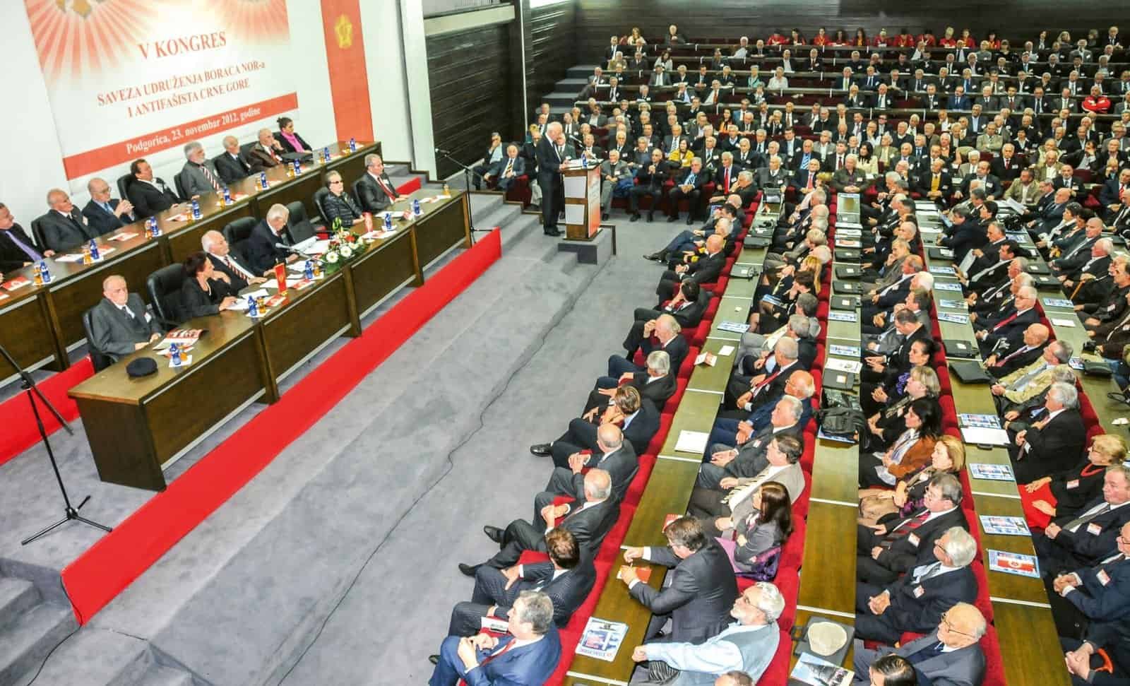 Svečana pjesma — partizanska, boračka, antifašistika himna na kraju, na početku oko pet stotina delegata i gostiju: najmlađi u prvoj, najstariji pri kraju desete decenije, pozdravi saboraca, prijatelja iz svijeta i bivše domovine, poruke najmlađih, čestitke i zahvalnost predsjednika Države, besjeda boraca i antifašista kao opomena, kao znak pored puta, da borci-antifašisti, dijele odgovornost za budućnost Crne Gore — to je Peti kongres Saveza boraca NOR-a i antifašista.